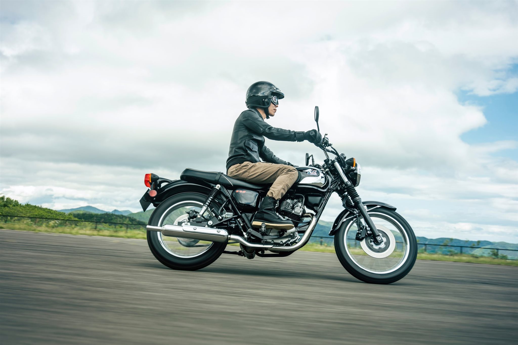 2024 jährt sich die Gründung von Meguro, einer der ältesten Motorradmarken Japans, zum hundertsten Mal. Zu diesem Anlass stellt Kawasaki für die 250-cm-Klasse die Meguro S1 vor - ein luftgekühltes Retro-Klassikermodell, das für Tradition und Vertrauen steht. Das ikonische Design, das von der Kawasaki 250 Meguro SG aus dem Jahr 1964 inspiriert wurde, wird von einem angenehmen Fahrgefühl begleitet. Gleichzeitig machen sie das leichte Chassis und die niedrige Sitzhöhe zu einem hervorragenden Einsteigermodell.
